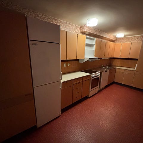 Köket är i original och i gott skick med normalt bruksslitage (se bilder). Det passar dig som vill ha ett tidstypiskt kök i retrostil. Vi säljer det komplett med stommar, lådor, luckor, bänkskivor men exklusive vitvaror och blandare.