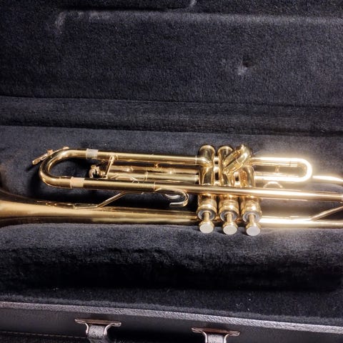 Trumpeten säljs komplett med tillhörande originaletui och ett urval av sordiner. Se bilder för skick och detaljer.