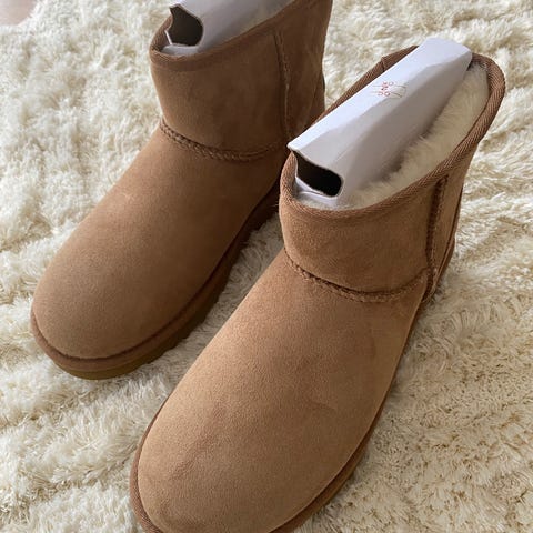 UGG Classic Clear Mini i svart färg, storlek 39, unisex. Stövlarna är tillverkade med en klar, glänsande yta och har en robust sula för bra grepp. Passar för barn och är anpassade för att ge skydd och komfort i våta förhållanden.