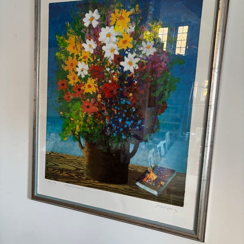 Stig Lindberg litografi föreställande blommor. Numrerad 62 av 100 exemplar. Färgrik och detaljrik konsttryck med signatur av konstnären.
