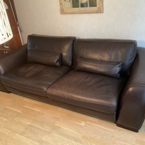 Säljer en mycket gedigen och tidlös 3-sits soffa i äkta skinn, inköpt i USA i mitten av 1990-talet. Soffan köptes ny för cirka 30 000 kr och är byggd i kraftiga material med fokus på komfort och hållbarhet.