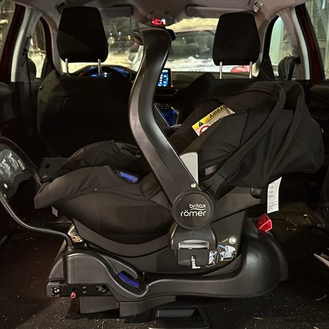Säljer ett babyskydd av modellen Britax römer primo inklusive bas för att användas med isofix eller bälte.