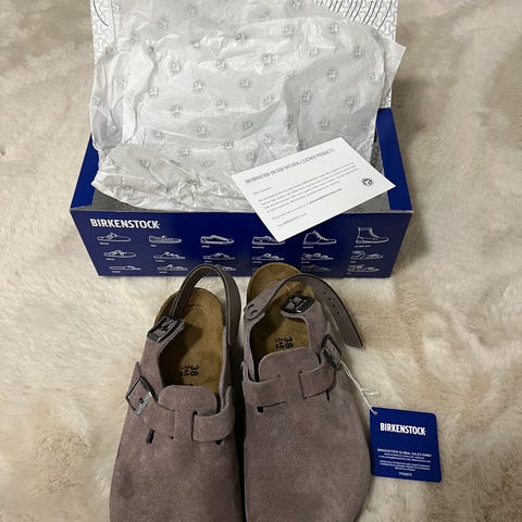Helt nya Birkenstock tofflor som jag fick i julklapp men tyvärr fel storlek.