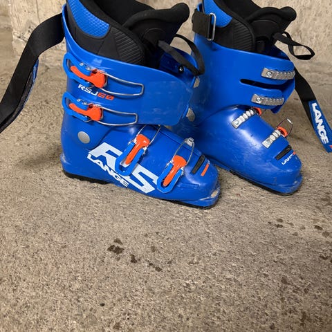 Alpinpjäxor från Lange i stlk 235. Översta spännet på ena pjäxan är trasigt men fungerade fint att spänna åt ändå.