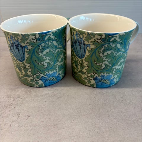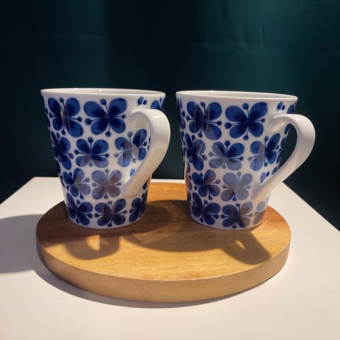 Två vita muggar med äppelmotiv, från Hemtex. Aldrig använda. Ca 10-12 cm höga. Säljes pga platsbrist. Finns i industristaden i Uppsala. Endast Swish. Pris: 225 kr för båda.