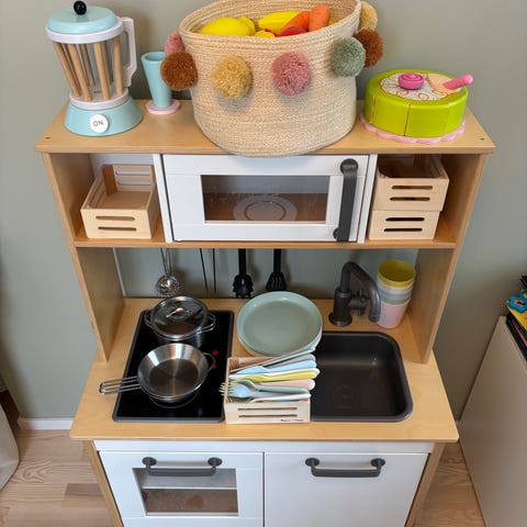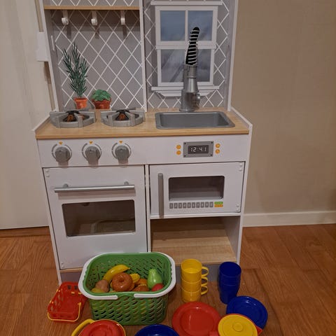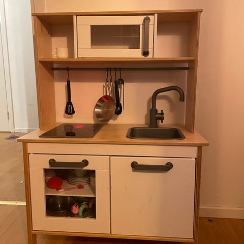 Säljer vårt fina leksakskök då det inte används. Även barnens kökstillbehör/leksaksmat ingår