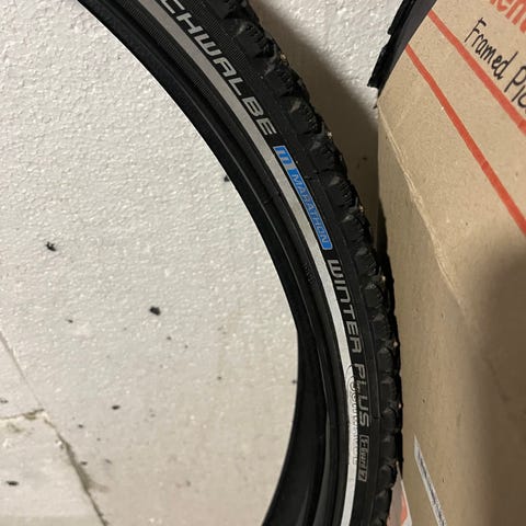 Schwalbe Marathon Winter Plus är dubbdäck för cyklar med dimensionen 28 tum. Däcket är utformat för vinterbruk med dubbar som ger bättre grepp på is och snö. Passar för användning på cyklar som kräver slitstarka och vinteranpassade däck. I princip oanvända och i mycket bra skick.