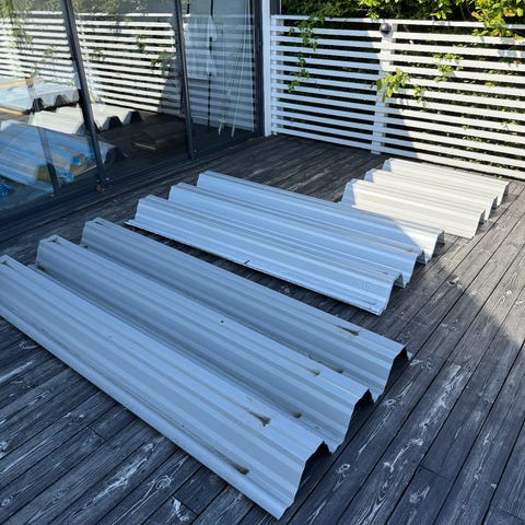 Ca 60st hyllplan & minst 20st gavelstag med sidoplåtar & bultar.