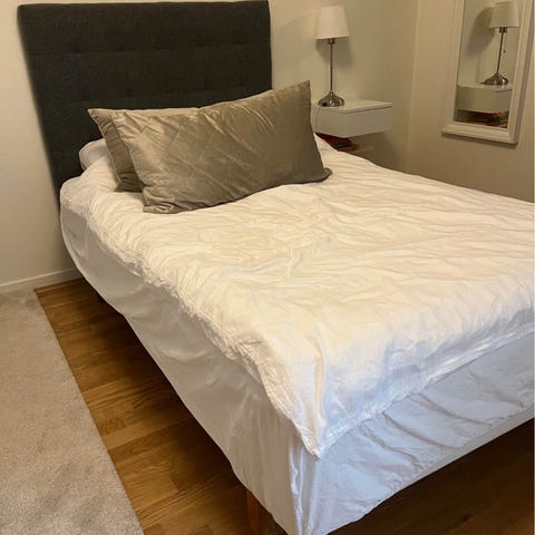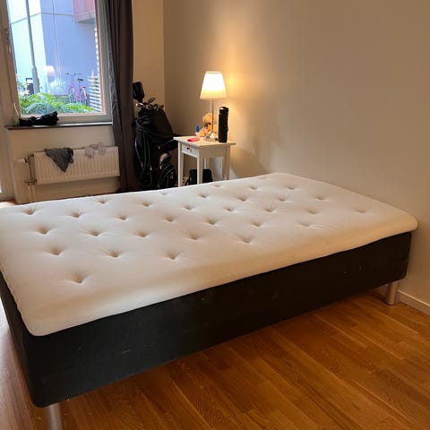 Skickar med IKEA-bäddmadrassen (hög elastiskt skum) om ni vill ha den, modell Tudddal, ej i bild.