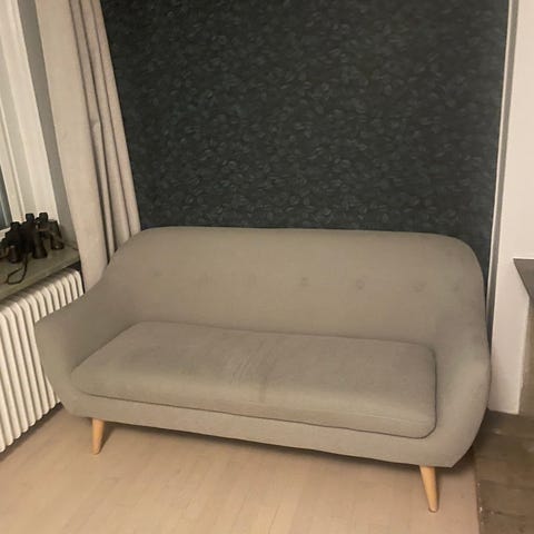 Glostad! Grå liten soffa från IKEA. Sparsamt använd. Beskrivning se: https://www.ikea.com/se/sv/p/glostad-2-sitssoffa-knisa-moerkgra-50489012/