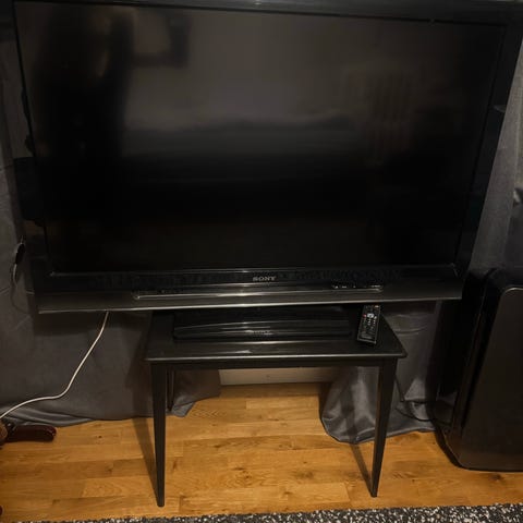 Helt rimlig ledtv med stativ och utan fjärrkontroll.