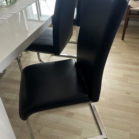 6stycken hela och fina stolar med svart läder.
