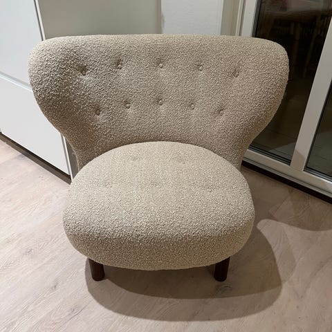 Säljer en vit Arka Loungestol formgiven av Yngve Ekström.