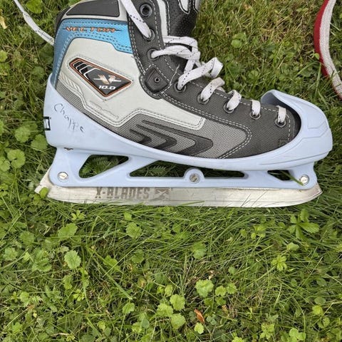 True tf custom målvakts skridskor stl:10 har extra skenor som har använts tre gånger och ett par typ nya i som har använt typ en månad-2600kr för skridskorna och med extra skenor mer