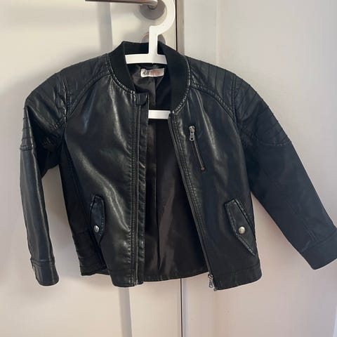 Tuff fodrad "skinnjacka" från HM i konstläder, storlek 128. Bra skick, knappt använd.