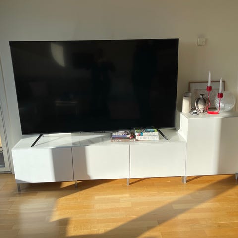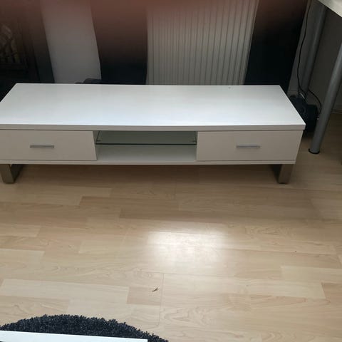 Två st högglansvita bestå bänkar med glasskivor ovanpå. Använd men i mycket bra skick.