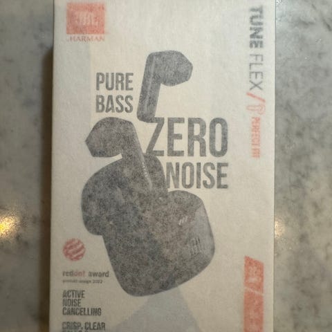 JBL Tune Flex trådlösa hörlurar med aktiv brusreducering och Pure Bass-ljud. Levereras med laddningsfodral. Färg: vit. Helt oöppnad.