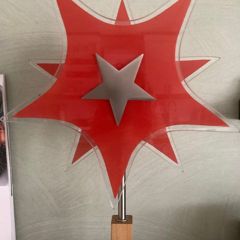 Superkool annorlunda julkula i röd färg med glitter. med LED-slinga. Höjd 32 cm inklusive fästet på toppen. Omkrets 111 cm. Komplett med transformator. Sladdlängd 5 m. För inomhusbruk. Vitt sken som på de sista bilderna inte riktigt framkommer.