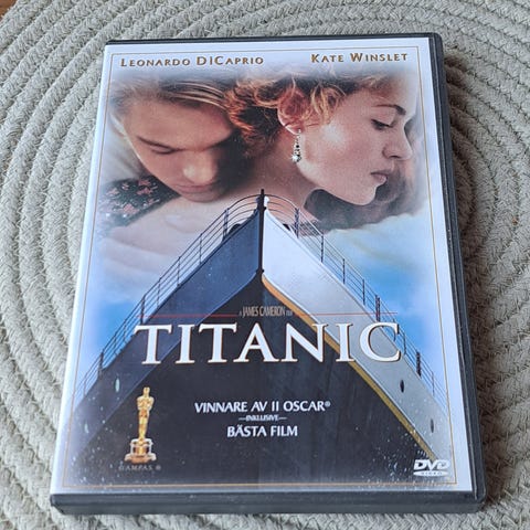 Titanic VHS-film levereras med en samling foton och miniatyrbilder från filmen. Innehåller en VHS-kassett med filmens titel och omslag med filmens motiv och skådespelare.