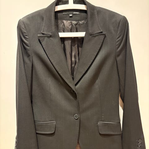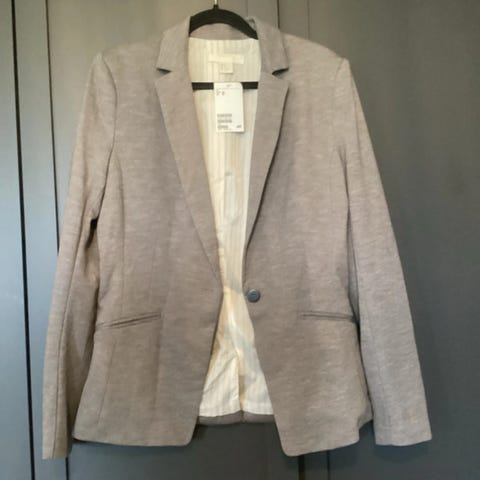Snygg kavaj från H&M i storlek S. Vit grund med svarta prickar. Svart innerfoder. Fint skick, sparsamt använd.