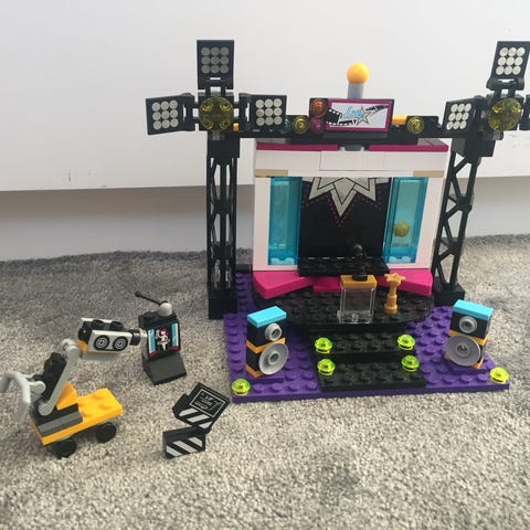LEGO Friends lekset med olika byggdelar och figurer. Passar för barn från 5 år och uppåt. Setet innehåller delar för att bygga en lekpark och inkluderar flera karaktärer från Friends-temat.