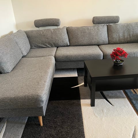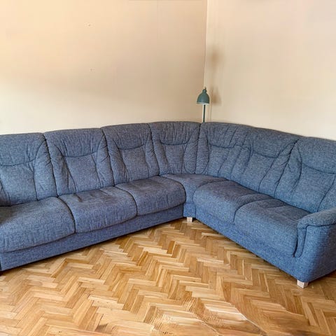 Soffa hörnsoffa med rutigt tyg och förvaringsfack