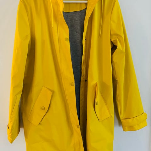 Säljer en fint regnjacka storlek är XS men är ändå lite stor.