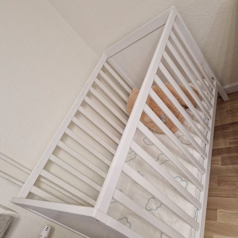 Ena sidan kan tas bort när barnet vuxit till sig och inte behöver spjälor runt om.