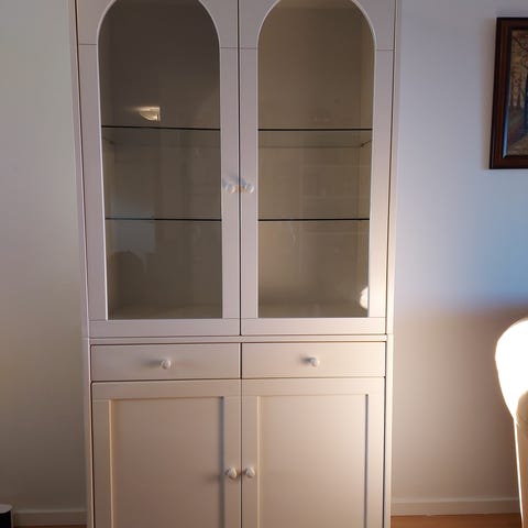 Äldre ekskåp i äggskalsvitt bortskänkes