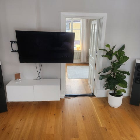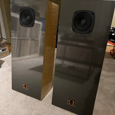Högtalarna är princip i nyskick förutom två mycket små blesyrer på den bakre kanten av en av högtalarna. Inget man ser när dom är uppställda. Se bilder.