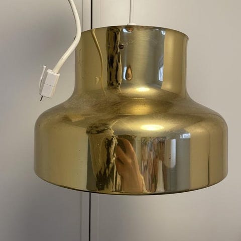 Taklampa likt bumling men från Falkenbergs belysning retro i gulmetall 48 cm i diameter och 20 cm hög i fint bruksskick se bilder.