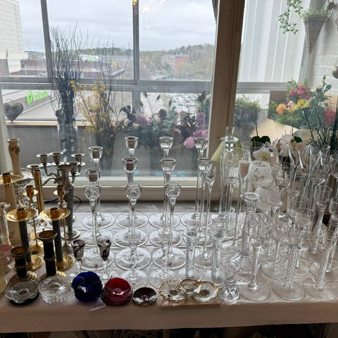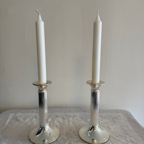 Ljusstakar i glas, två stycken i olika storlekar, 22 & 19 cm. Transparent material med en klassisk design. Passar för användning med vanliga ljus och som dekorativa föremål i hemmet.