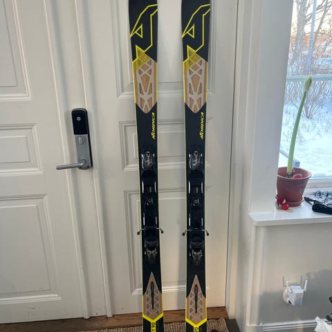 Salomon QST Spark skidor med bindningar (1700Kr) , lämpliga för allsidig skidåkning. Skidorna är försedda med bindningar och levereras med pjäxor i matchande storlek (900Kr) och färg om så önskas.