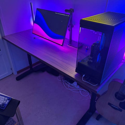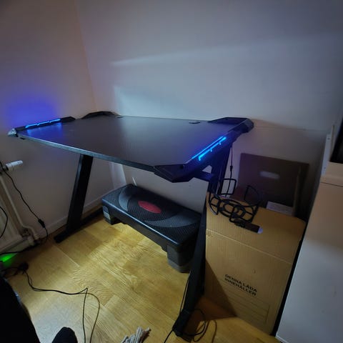 Säljer nu mitt skrivbord som jag har haft i cirka ett år. Det är höj- och sänkbart samt utrustat med LED-belysning. Måtten är 130 × 60 cm och skrivbordet är i mycket gott skick, nästintill som nytt.