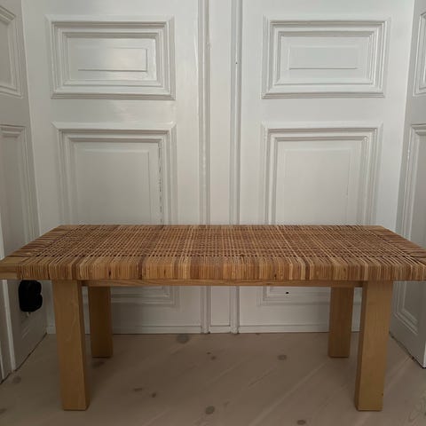 I samband med ommöblering är det dags för denna bänk att hitta ett nytt hem :) Jag har använt den både som soffbord och sidobord genom åren.