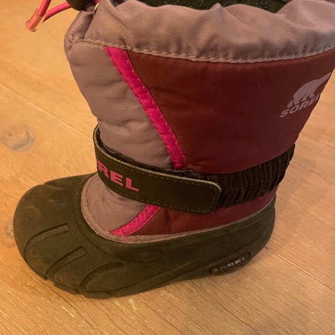 Sorel barnskor i storlek 25. Skorna är utformade för att ge skydd och komfort vid kallt väder. De har en robust konstruktion och håller små fötter varma även de kallaste dagarna. Innerskon kan man ta ut och tvätta.