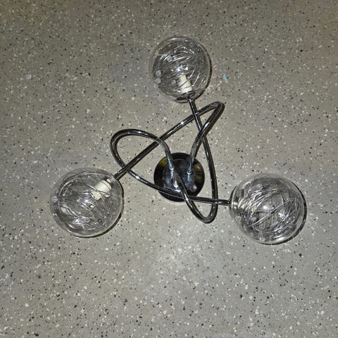 Taklampa med fem ljuskällor i metall och glas