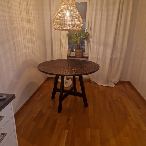 Selling a brand new, unused ALSTED dining table Ø120 from Jysk in natural oak color for 1.400 SEK (original price 1.799 SEK), as I keep my own table from my previous apartment.