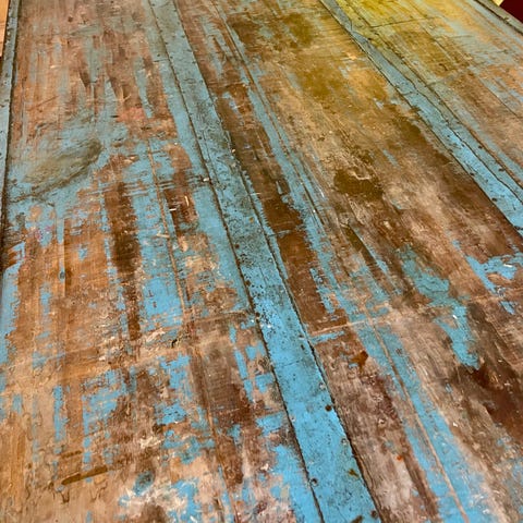 Rustik, lantlig stil med tydlig trästruktur och naturlig patina. Ett riktigt tungt och gediget bord – byggt för att hålla i många år.