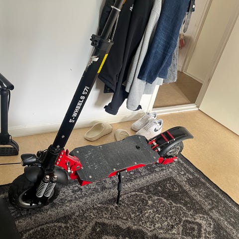 Ninevee elektrisk scooter s65 i svart och grön färg. Scooter är avsedd för vuxna och har en robust design för stadskörning och pendling. Utrustad med handtag och hjul för enkel manövrering.
