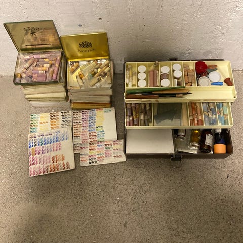Två lådor. Äldre färg som går att använda