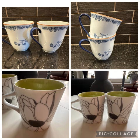 29 stycken muggar från Röstrand Filippa K i olika mönster och färger. En design är det tre stycken likadana och en annan två stycken likadana annars är det en utav varje. Mycket sparsamt använda, nyskick.