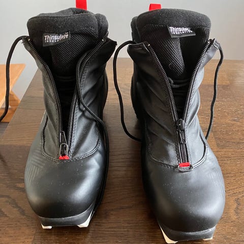 Längdpjäxor i storlek 41 respektive 42. Begränsat använda i bra förhållanden.