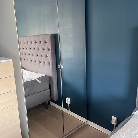 Säljer en rymlig och stilren garderob i gott skick. Garderoben har en praktisk spegeldörr som ger rummet en större och ljusare känsla. Invändigt finns klädstång, hylla samt lådor med bra förvaringsutrymme för både kläder och andra tillhörigheter.