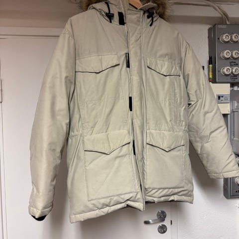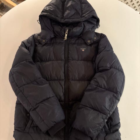 GANT Super Downer barnjacka i storlek 164, färg blå. Tillverkad i bomull och designad för unisex. Jackan har en pälsimitation på huvan och flera fickor för förvaring.