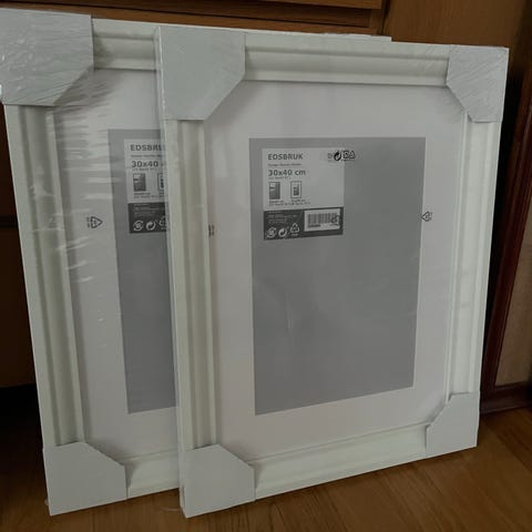 2 st IKEA dekorationsramar och de 2 kvadratiska ramar köpte jag från en inredningsbutik - med olika djurmotiv inklusive giraff, flamingo, björn på cykel och kustlandskap. Ramarna är i olika färger och stilar, inklusive vita och svarta ramar.