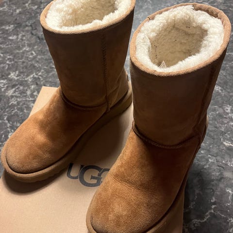 Beige Uggs stl 36 med platå sula. Köpa i September 2025. Använda ett fåtal gånger.