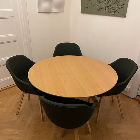 Mycket stabilt och tåligt matbord från HAY. Spår av användning men överlag i gott skick (se bilder). Underrede kan monteras av vid behov/transport. Inköpt på Länna möbler där också fullständig specifikation finns. Ursprunglig manual för montering medföljer. Nypris 13.499kr.