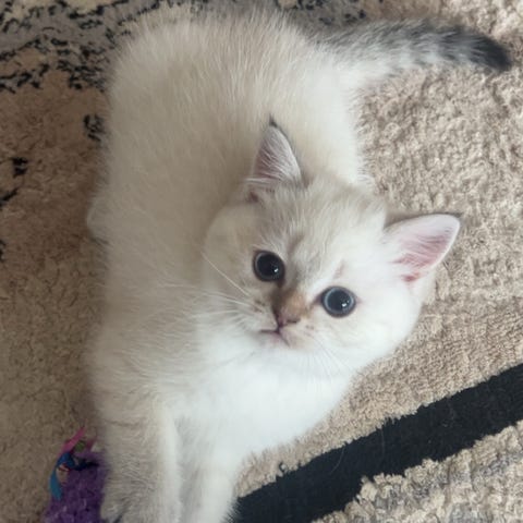Han är en brittisk korthår, född 15 oktober 2023, lugn och mycket mysig till sin personlighet. När han vill ha uppmärksamhet kommer han gärna fram och puffar med huvudet för att visa att han vill bli klappad. Vid mycket folk kan han vara lite försiktig och håller sig undan, men kommer alltid fram igen när han känner sig trygg.