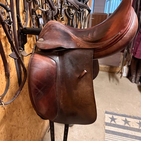 Sadeln är genomgången, servad och färgad (alltså förbättrat sadelns svarta originalfärg) i slutet av 2022 hos Ecoline Hästsport AB (sadelmakeri och sadelreparatör) för ca 2500 kr - kvitto på vad som gjorts finns, och den har efter det förvarats i mitt hus. Sadeln har en liten lagning i sitsen som inte syns alls när man sitter i sadeln. Efter sadelns uppgradering och reparation hos Ecoline har jag fått hjälp att värdera den av en certifierad sadelutprovare/equiterapeut till 11.000 kronor. Jag väljer dock att sälja den för 10.000 kronor.
